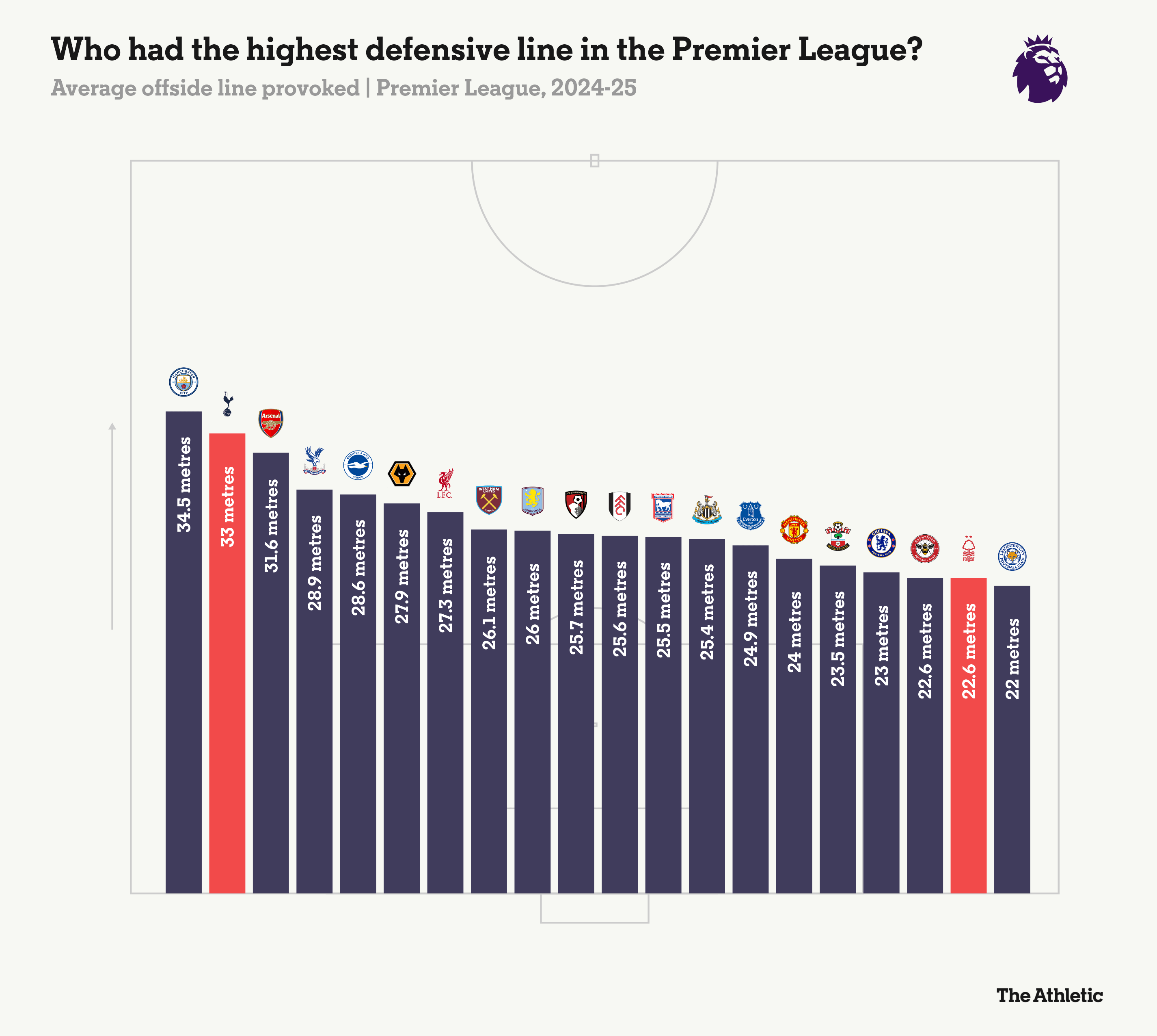 森林队能否应对这种增加的工作量还有待观察。热刺的高强度跑动源于波斯特科格鲁希望在高位逼抢并夺回球权。相比之下,森林队上赛季在逼抢方面并不积极,每进行一次防守动作平均允许对手传球15次,为联赛最高。